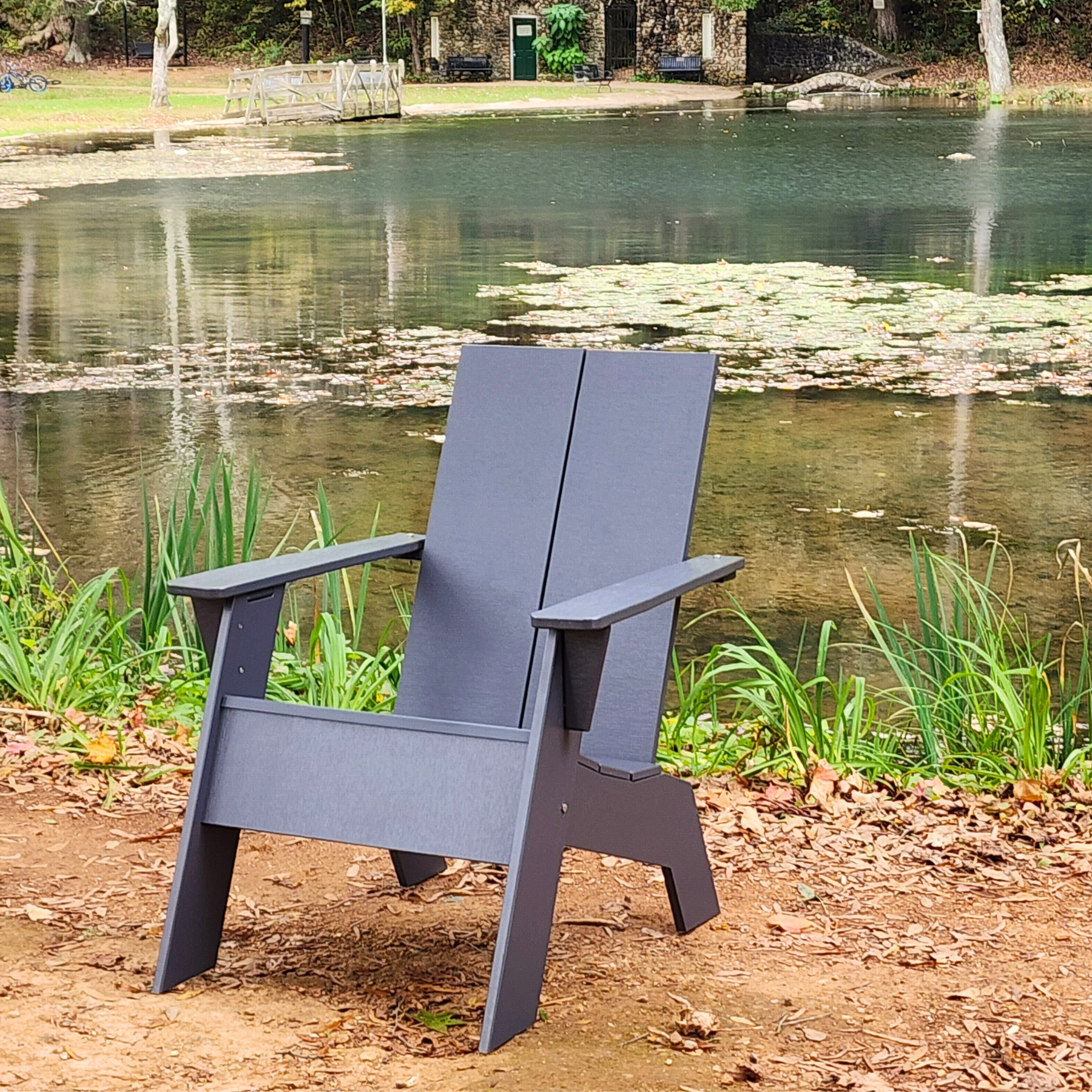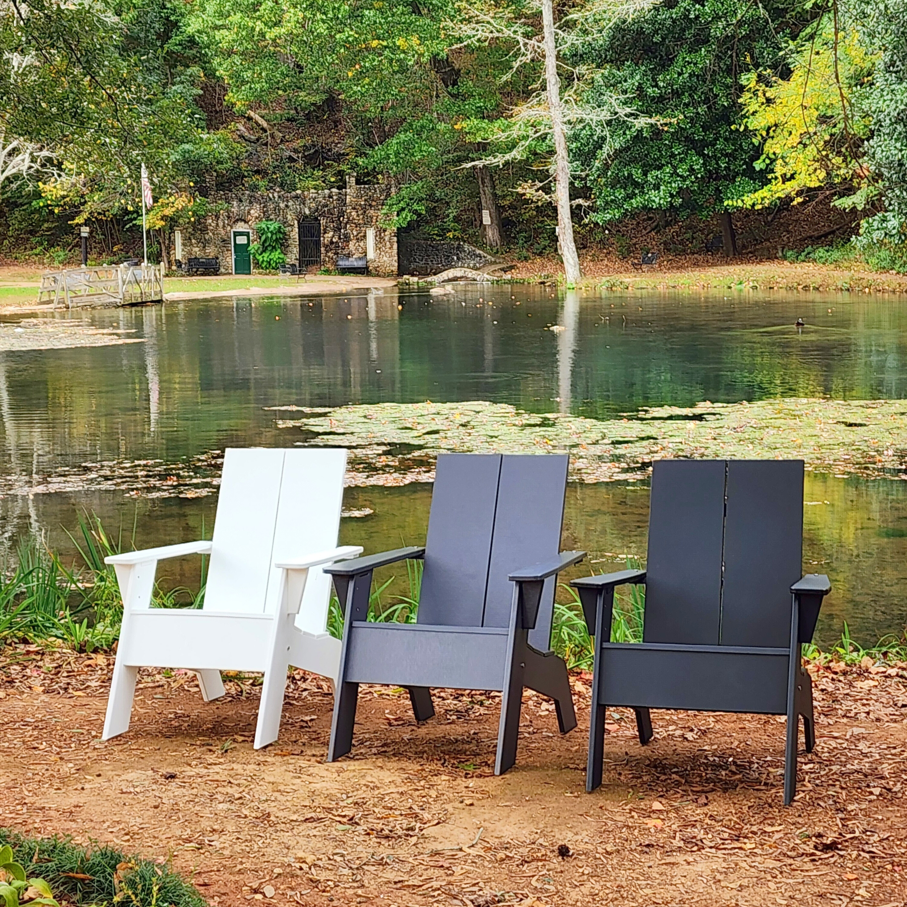 Handmade in Cave Spring, GA, this Deluxe sized Modern Adirondack Chair will be the focal point to any outdoor garden or patio space. Constructed of Marine Grade HDPE and Stainless Steel Fasteners.