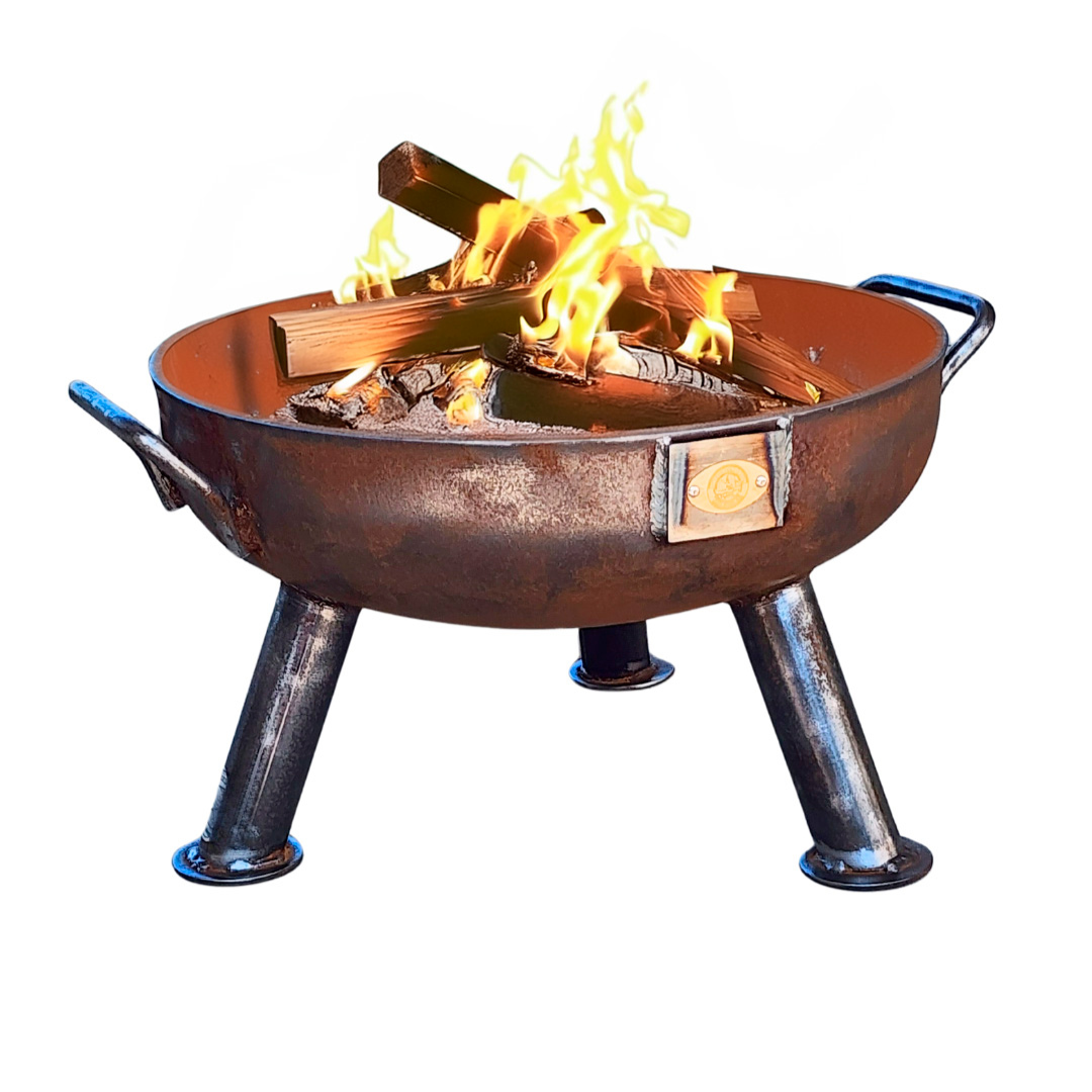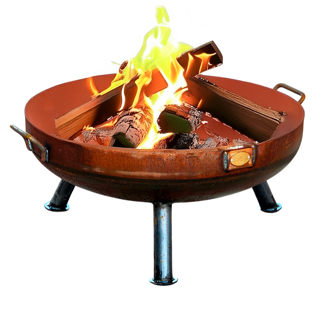 Our solid steel metal bowl fire pits add a great rustic look to any outdoor setting.  The American Steel used is 3/16" to 1/4" thick and lasts for decades. Will not rust through like other metal fire pits from big box stores that last only a few seasons of use.