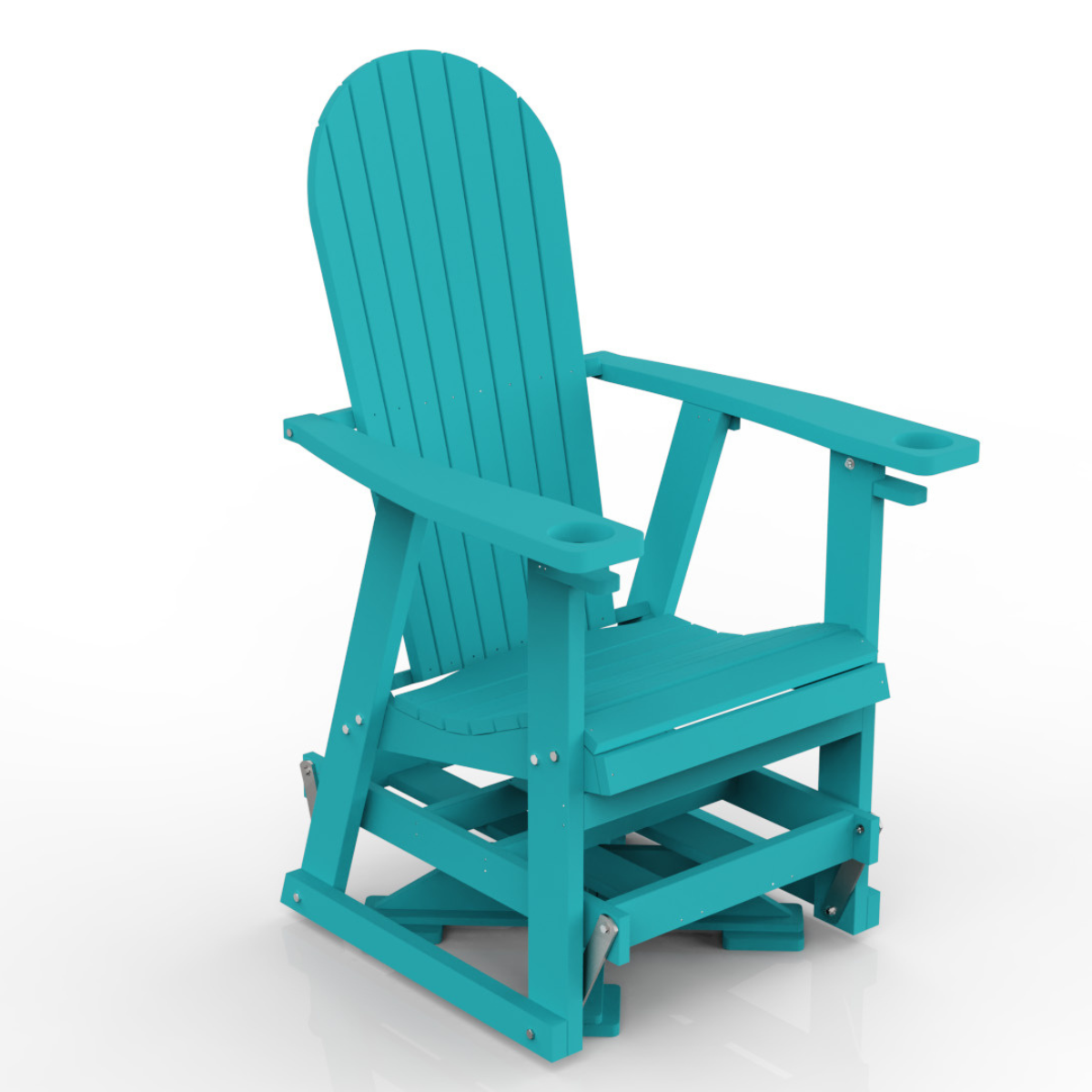 Our in-house poly swivel glider has a style that goes well with our in-house gliders, Classic, Wide Classic, and Deluxe Tall and Wide chairs. Built-in cup holders come standard, and the poly material will last for years without needing any maintenance.